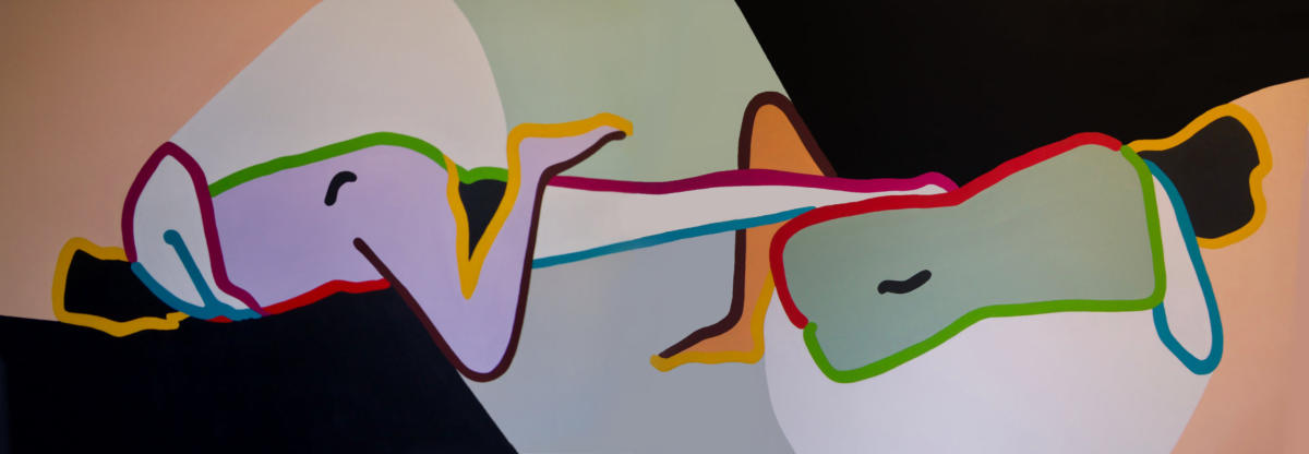Akt, Oel auf Leinwand, 2-teilig, 119 x 386 cm Paar, Oel auf Leinwand, 2-teilig, 160 x 80 cm Ruecken, Oel auf Leinwand, 70 x 33 cm Spagat, Oel auf Leinwand, 140 x 100 cm